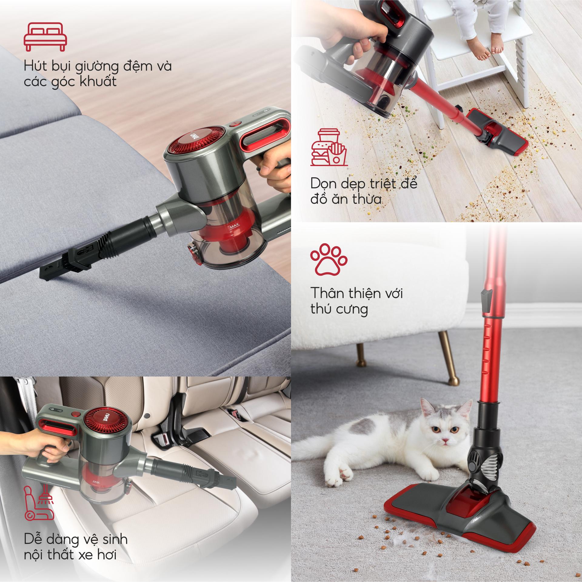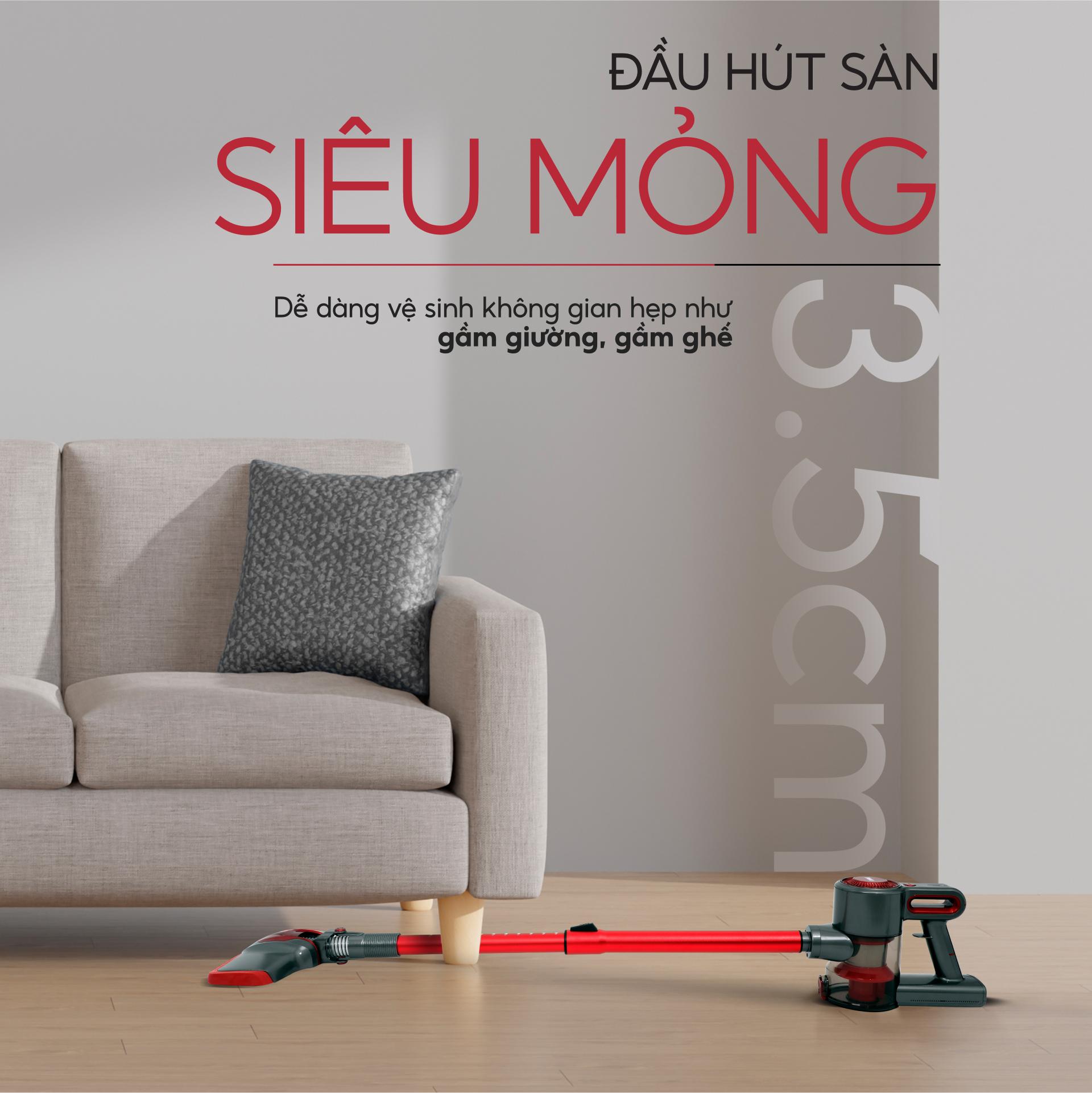- THIẾT KẾ KHÔNG DÂY: linh hoạt và không nặng nề như máy hút bụi lau nhà có dây, lý tưởng cho mọi không gian từ phòng khách, cầu thang, ô tô sang trọng đến giường đệm