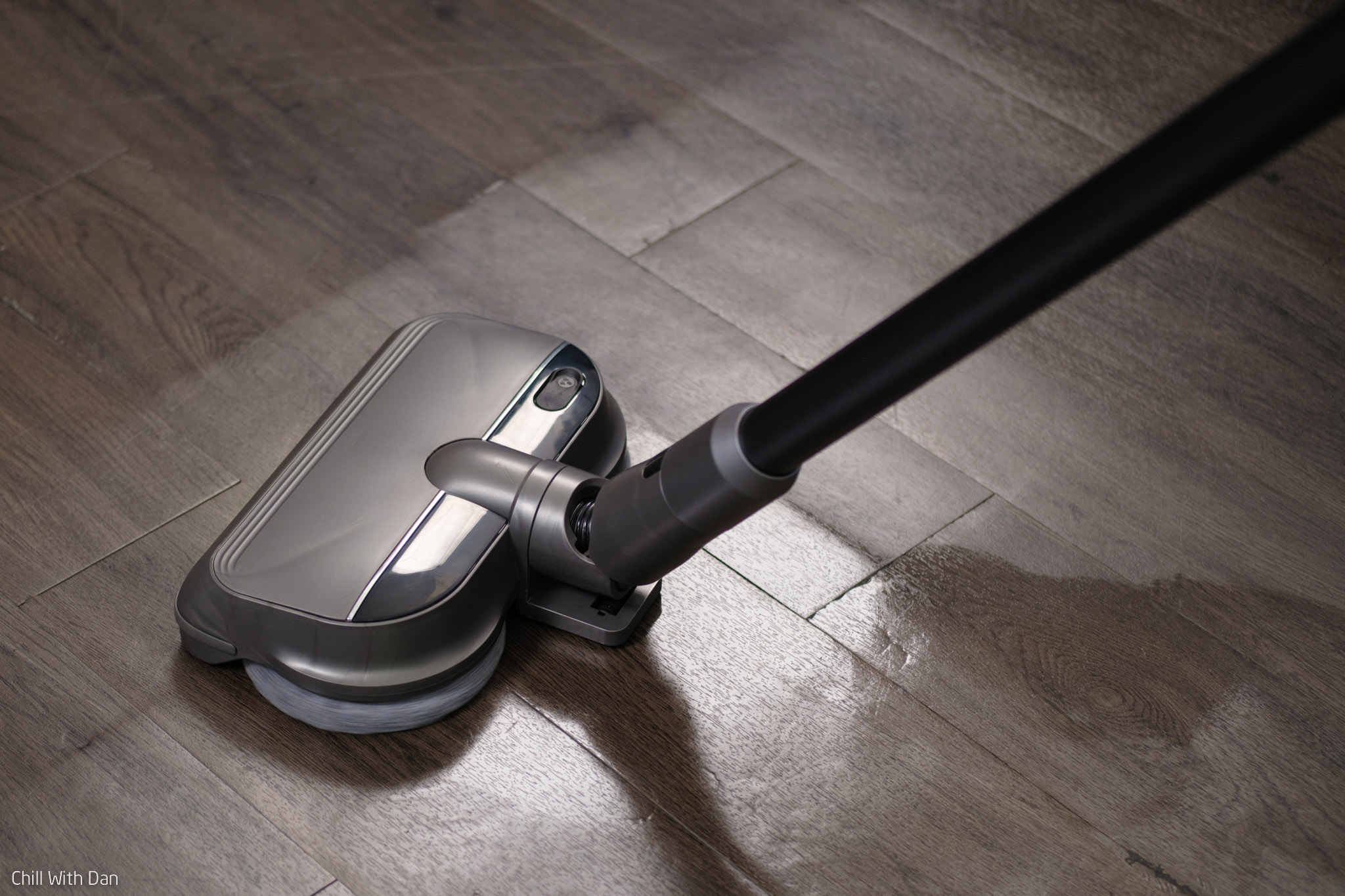 Đây có lẽ là điểm nổi bật hiếm thấy trên thị trường so với những dòng máy hút bụi khác. Đầu lau sàn vừa có khả năng hút bụi, vừa có khả năng lau ướt. Bạn chỉ việc đổ nước vào hộc chứa nước của đầu hút này và bấm công tắc, di chuyển tới đâu là sàn được lau ướt tới đó. Đợi sàn khô, bạn sẽ có ngay một sàn nhà sạch bong, sáng bóng.