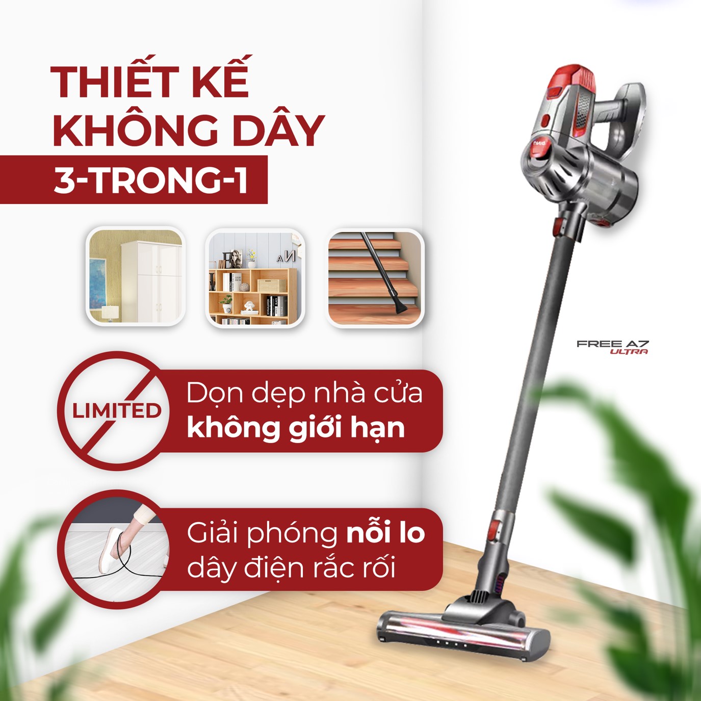 Đáp án tiếp theo cho thắc mắc máy hút bụi cầm tay loại nào tốt là phiên bản nâng cấp của Free A7 chính là Free A7 Ultra.
