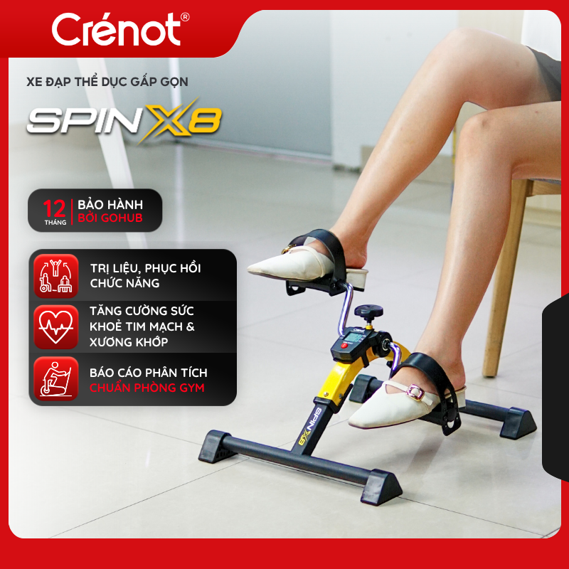 Trong nhịp sống hối hả ngày nay, việc chăm sóc sức khỏe ngày càng khó khăn vì không phải ai cũng có thời gian đến phòng tập. Xe đạp thể dục gấp gọn Crenot Spin X8 là lựa chọn hoàn hảo, giúp bạn duy trì sức khỏe ngay tại nhà hoặc văn phòng với chi phí cực kỳ hợp lý. Đây là sản phẩm mang lại giải pháp tập luyện hiệu quả, tiện lợi và linh hoạt, phù hợp cho nhiều đối tượng từ học sinh, sinh viên đến người bận rộn hay người lớn tuổi.