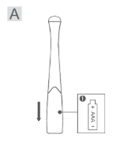 - Gắn pin AAA vào bên trong ngăn chứa pin. Chắc chắn phải lưu ý đến các cực của pin như minh họa trong hình vẽ (1)